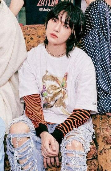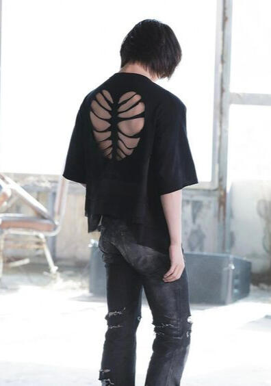 en perpétuel mouvement comme les comètes autour des planètes lointaines, il faut pour le suivre, s'armer de patience. daemin est toujours en train de bouger, de taper du pied, de s'agiter, ne sait pas s'arrêter, contrôle qu'il refuse de brider pour se sentir plus libre quand dans l'esprit tout est parfois brouillard. les cheveux sont longs, parfois un peu trop puisqu'il oublie régulièrement d'aller chez le coiffeur, il les attache en chignon ou les laisse, libres, tomber devant ses yeux. taille plutôt petite (1m71) qu'il compense parfois avec des bottines à plate-forme, il ne fait pas vraiment attention à être à la pointe de la mode, s'habille de vêtements amples et confortables qui ne gêneront pas ses mouvements -fait cependant une exception lorsque les couches s'effeuillent, adore les dentelles délicates et les lignes de cuir qui épousent les formes nues. ongles souvent vernis, d'un noir brut ou de couleurs mal accordées, ils finissent toujours rongées et laissent des arc-en-ciel sur les canines qui se dévoilent trop souvent lors de sourires d'enfant. le corps-cascade est, par endroits, marqué : des cicatrices vieilles de plusieurs années, plusieurs fantômes témoignant d'anciens points de suture, ses membres sertis de broches et de métaux qui ne se voient plus à l'oeil nu. Les bleus s’entremêlent parfois avec des tatouages si idiots qu’ils sont sûrement des défis, et les bijoux incrustés dans la peau ornent parfois ses oreilles, son nombril, anneau sur sa narine qu’il retire en fonction des jours. il n'est pas rare de le voir revenir avec du sang sur ses vêtements ou de constater des bleus fleurissant à l'ombre d'un genou ou d'une gorge -la peur de rien, surtout pas de se blesser, qui peut parfois mener à être un peu trop inconsidéré. champ de bataille ou champ de fleurs sans cesse agité à l'ombre des vents contraires.